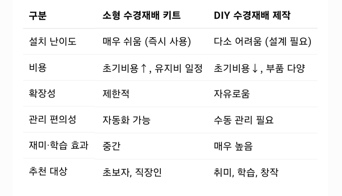 ---2. 🛡소형 수경재배 키트의 장점과 한계
