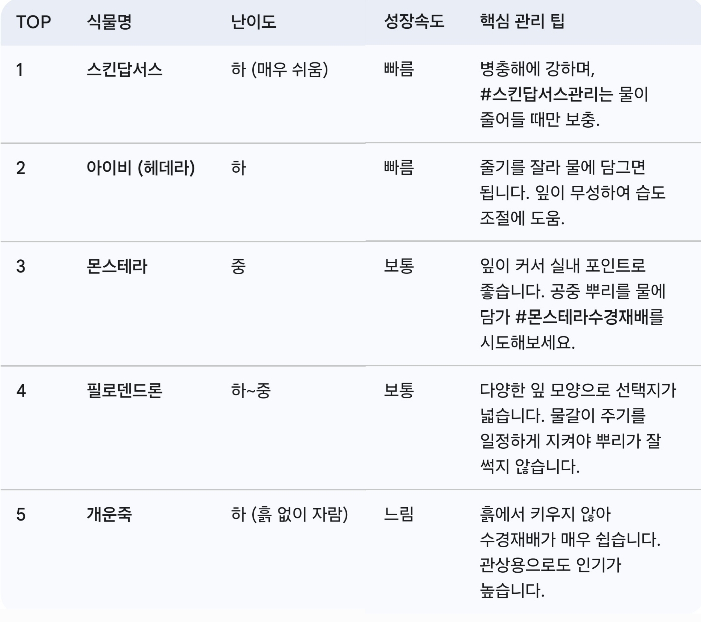 4. 💧 실용적인 그린 라이프: 누구나 쉽게 키우는 수경재배 인기 식물 BEST 5